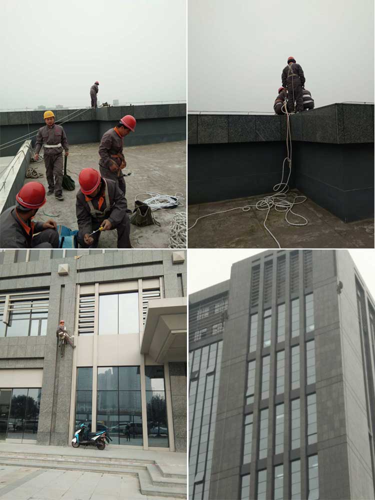 我們要給樓層進行整體的一個亮化工程建設,要用吊繩進行吊裝作業,但是我們的員工沒有叫苦叫累,一直以較專業的態度進行亮化項目。